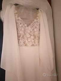Vendo abito da sposa acquistato presso atelier nel 2021. Con maniche rimovibili. Come nuovo, lavato e stirato presso una lavanderia dopo l'utilizzo. L'abito é adatto anche per donne molto alte: la gonna é stata fatta su misura per altezza di 1.85 circa.