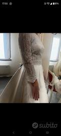 Vendo abito da sposa firmato Rosa Clará modello 2025, gonna ampia con strascico in tessuto Mikado, corpetto in pizzo ricamato con perline. abito artigianale Made in Italy.