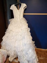 Abito da sposa tg 44 in raso e chifffon lavorato. Con coprispalle in raso lavorato. Prezzo trattabile.