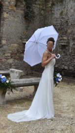 Vendo abito da sposa taglia 42/44 , stile impero, di chiffon georgette, usato una sola volta compreso di cuscinetto porta fedi della stessa stoffa del vestito + coprispalle.