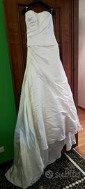 Abito da sposa sartoriale acquistato presso atelier Vanny Spose a Genova nel 2012. Raso, color panna, piccolo strascico, utilizzato da donna alta 163 cm peso 65 kg taglia 46 circa, completo di velo e coprispalle di tulle.