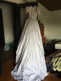 Abito da sposa, bellissimo tessuto, non presenta nessuna scucitura, corpetto e maniche ricamati. E’ necessario farlo lavare e stirare. Veste una taglia 42.