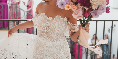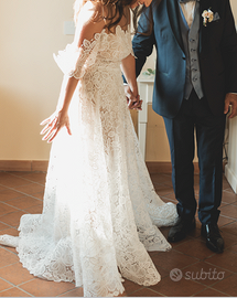 Vendo abito da sposa in pizzo firmato Andrea Sedici, modello unico realizzato a partire da una collezione poi modificata su misura per ottenere il risultato che vedete in foto.