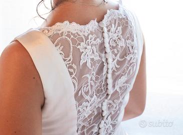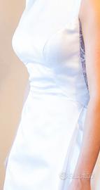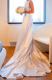 Abito da principessa realizzato in morbido raso con intramontabile scollo a barchetta,