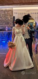 Vendo abito da sposa Iselin, Justin Alexander. Il modello nasce come taglia 40 ma sono state inserite delle stringhe successivamente per permettere una maggiore adattabilità visto lo stato di gravidanza. Sottogonna macchiato e leggermente scucito. Velo e mantella non compresi.