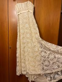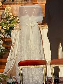 Splendido abito da sposa pizzo di seta color avorio. Taglia 42 . Scarpe in abbinamento misura 36 . Spalline removibili. No stola di velo come nella foto . Sartoriale .