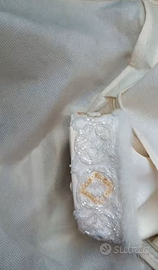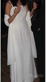 Abito da sposa “le sete di Pastore” colore Avorio composto di 3 pezzi abito a sottoveste semplice, copriabito con inserti in vero Visone e perline e stola: il tutto in Cady 100%-seta.