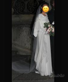 Corredato da: gianti in raso su misura, velo avorio su misura e due scialli ( mi son sposata in inverno ) ma l’abito è uno stile impero 4 season ( va bene in tutte ke stagioni )
