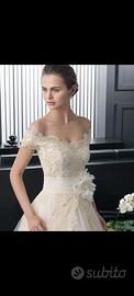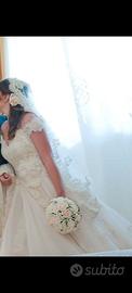 Vendo Romantico abito da sposa confezionato in tulle e pizzo. Completano questo modello lo scollo profondo, la schiena a V e le spalline scese.