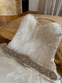 Vendo in ottime condizioni un bellissimo abito da sposa con svarosky originali,dotato di cinturino guanti e velo.