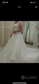 Vendo abito da sposa monospalla in stile classico/romantico, modello redingote ( è caratterizzato da un punto vita stretto e spostato verso l'alto e da una gonna voluminosa, che si apre a partire da fianchi) tutto il vestito è impreziosita da cristalli swarovski e perle. In aggiunta al vestito ci sono 2 veli; uno attaccato alla spallina ( può essere utilizzato come coprispalle) e l'altro è un velo lungo a calata.