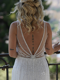 Indossa questo abito e immergiti nell'esperienza di un matrimonio da favola, sentendoti una vera principessa, gli invitati non potranno fare a meno di ammirare la tua bellezza e classe.Non perdere l'occasione di fare tuo questo gioiello di sartoria italiana