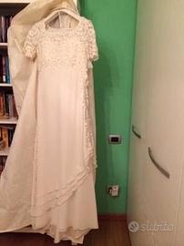 abito da sposa lungo con inserti in macramè tg.44 , manica corta si infila dall'alto ,