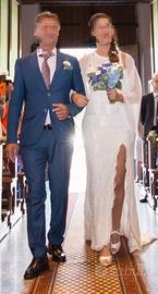 Abito di colore bianco candido integralmente ricamato a mano di pizzo.