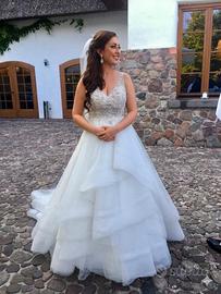Vendesi splendido abito da sposa originale del prestigioso brand australiano Martina Liana, modello Style 884. L'abito è un capolavoro di sartoria couture, perfetto per una sposa che cerca eleganza, luce e una silhouette sofisticata. CARATTERISTICHE PRINCIPALI: Modello: Martina Liana 884 (A-line con corpetto ricamato a mano e gonna a balze in tulle dinamiche). Colore Stillwhite. Taglia: Etichetta UK 8, che corrisponde a una 40 italiana. Condizioni: Perfette, l'abito è stato pulito professionalmente in tintoria specializzata. DETTAGLI DEL CORPETTO: Il corpetto presenta un profondo scollo a V ed è interamente decorato con preziosi ricami e punti luce che illuminano il viso. Le coppe sono integrate (vestibilità ideale per una coppa B/C) e la struttura interna garantisce un sostegno eccellente anche senza reggiseno. COSA COMPRENDE IL PREZZO: L'offerta è un pacchetto completo "ready-to-wear" che include: - Abito Martina Liana 884 (Valore commerciale nuovo: oltre 3.000€). - Velo coordinato in tulle pregiato. - Sottogonna specifica per mantenere il volume e il movimento naturale della gonna. PREZZO: 1.200€ Il prezzo tiene conto dell'esclusività del marchio e degli accessori inclusi. INFO SPEDIZIONE/RITIRO: Disponibile per il ritiro a mano in zona Bologna per permettervi di visionare l'integrità del capo, oppure spedizione tracciata e assicurata tramite corriere.