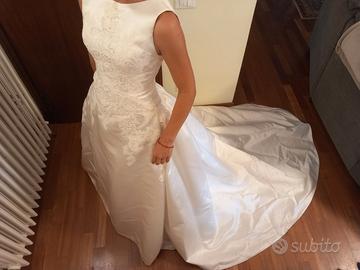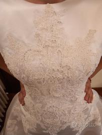 Vendo meraviglioso abito da sposa in stile classico con linea ampia e dettagli in pizzo ricamato. Indossato una sola volta e in ottime condizioni, perfetto per chi cerca un vestito romantico, femminile e senza tempo.