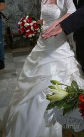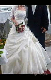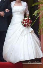 Vendesi abito da sposa completo di giacchetta coprispalle marca l'Empire du Mariage taglia 42 con ricami in corpetto e gonna e perline rosse.