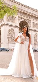Vendo abito da sposa stilista “Michela Ferriero” Rive Droit, Collezione Enchanté, corpetto in pizzo, gonna in pura seta a strascico, velo a taglio vivo (modificabile come in foto), taglia 46.