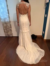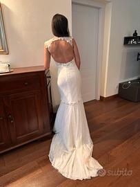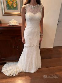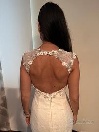 Abito interamente in pizzo , impreziosito da perle e dettagli luminosi compreso di velo in tulle minimal ( non in foto ) il tutto in ottimo stato . Acquistato in atelier Happy Sposi di Crema .