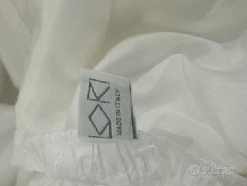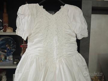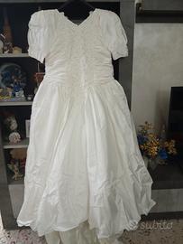 abito da sposa in raso con coda ...corpino ricamato con perline ...bordo manica a palloncino rifinito con perline completo di sotto abito con cerchio più guanti più acconciatura e cuscinetto porta fedi