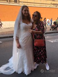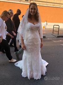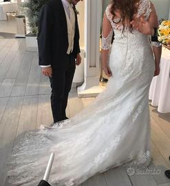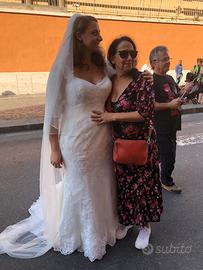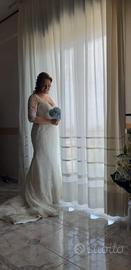 Abito da sposa Anna Ferro a sirena morbida, manica a 3/4 ricamata. Bottoncini diamanti sul retro, completo di velo. Il vestito è pulito.