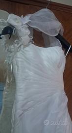 Abito da sposa della collezione Janvier, in chantung in seta, monospalla , la bretella è costituita da rose in stoffa (vedi foto) taglia 40/42 completo di velo lungo, sottogonna in tela, coprispalle (stessa stoffa). Disponibili anche scarpe in pelle, colore dell'abito, tacco n 12 , cinturino alla caviglia e plateau, misura 36 ( foto su richiesta). L'abito è in perfette condizioni, senza macchie o strappi, necessita solo di essere stirato. Napoli centro. € 500 trattabili .