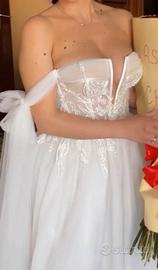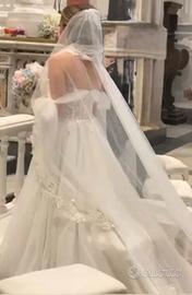 Abito da sposa completo di velo a cascata lungo completamente manifattura italia firmato nadia orlando.