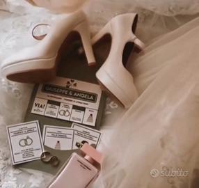 Vendo abito da sposa + velo + scarpe ✨ Vendo il mio abito da sposa indossato una sola volta nel mio giorno speciale 🤍 👗 Abito: • Modello: Justin Alexander/Diana • Taglia: 40-42 • Colore: bianco • Con Modifiche • Stato: ottime condizioni, non ancora lavato (normale utilizzo del giorno) 💎 Dettagli: pizzo 👰♀️ Velo: • Lunghezza: medio/lungo • Dettagli: bordo in pizzo 👠 Scarpe: • Décolleté • Numero: 38 • Colore: bianco • Indossate solo il giorno del matrimonio