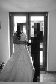 Vendo abito da sposa Marca Nicole Jolie, lavato in lavanderia e messo sotto vuoto. Abito a manica decolte, stile principessa, scollatura spalle aperta e tessuto organza.