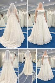Abito da sposa Nicole – NUOVO, mai indossato Descrizione: Vendo abito da sposa Nicole Milano, modello principesco con ricami in pizzo di alta qualità. L’abito è nuovo, mai indossato e mai modificato: taglia da atelier, perfetto per essere adattato alla propria misura. Include: - Velo lungo coordinato - Alette/maniche off-shoulder removibili - Etichetta originale - Nessuna prova effettuata, nessuna modifica Tessuti e ricami sono tipici della linea Nicole: eleganti, luminosi e molto valorizzanti in foto e dal vivo. Ideale per chi cerca un abito importante, romantico e di grande impatto, risparmiando rispetto al prezzo di atelier. Prezzo leggermente TRATTABILE dopo visione possibile spedizione o ritiro a mano su Roma