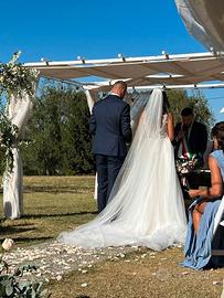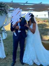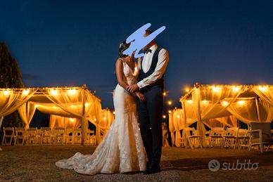 Vendo abito da sposa Nicole Milano, gruppo Pronovias, collezione Colet. L'abito è una stupenda sirena con bottoncini sul retro, in più ha una gonna in tulle che può essere rimossa dopo la cerimonia. Tutto il corpetto è arricchito di micro punti luci che lo rendono super brillante. È stato utilizzato una sola volta a Luglio e poi portato a lavare in lavanderia (200€). L'abito è costato 3500€ escluso di velo, gonna, scarpe, accessori capelli, riparazioni e lavanderia. Viene venduto incluso di velo. L'abito è una taglia 38 e all'interno vi è la stoffa per poter essere leggermente allargato. Per info contattemi senza problemi
