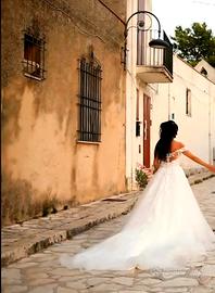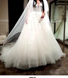Abito da sposa Nicole Milano taglia 40/42 stile principesco con gonna ampia e corpetto in pizzo Vendo a 2000€ incluso di velo con punti luce