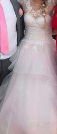 Vendo vestito da sposa collezione Nicole , colore rosa chiaro. Taglia 46 comprensivo di corpetto tasparente con pizzo , velo e sottogonna.