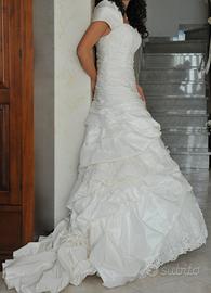Vendo abito da sposa in ottime condizioni, collezione Nicole, lavato e pronto per utilizzo. Taglia 40-42, come misure da foto. Compreso di velo lunghezza media, sottogonna con cerchio e stola a conchiglia. Prezzo di listino 2500 euro