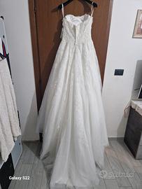 Sogni un'abito elegante e raffinato per il tuo giorno speciale? SEI NEL POSTO GIUSTO! Vendo un meraviglioso abito da sposa Nicole della collezione Colet. NUOVO,MAI INDOSSATO! Abito taglia S Senza maniche dal design moderno e romantico. Si presenta con un ricco corsetto impreziosito da dettagli in pizzo e applicazioni luminose che si estendono leggere e sparse lungo tutta la gonna. L'abito non è mai stato indossato e mai modificato a causa dell'annullamento del matrimonio. Acquistato in outlet si presenta all'interno della sua custodia.