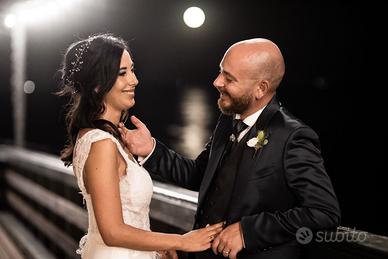 Abito da sposa Olympia, acquistato nel 2022. Corpetto con scollo a cuore, pizzo finemente ricamato con motivi floreali, spalline ufilizzabili a bretelle o lungo le spalle. Gonna morbida, strascico medio con anello