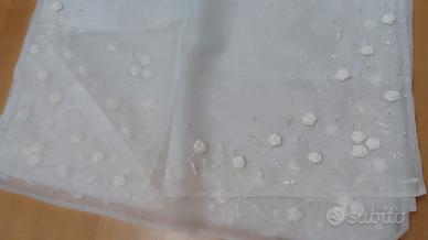Abito da sposa taglia S, corpetto decorato con perline e roselline regolabile con lacci nella parte posteriore (foto). Spalle scoperte con elastico interno. Bella gonna in tulle.