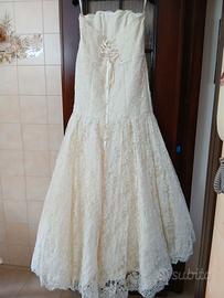 Abito da sposa modello sirena in pizzo taglia 44/46 colore avorio completo di sottogonna cosprispalle e velo