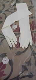 abito da sposa di colore ecru', abbottonatura dietro cerniera e bottoni in perla e asole elastiche, stoffa in pizzo riprende delle piccole rose, il velo è lungo con delle asole in cui vi è un pettinino per adagiarlo nell'acconciatura. l'abito non presenta segni di usura solo da lavare.
