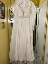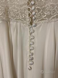 Abito da sposa originale Paola D’Onofrio (collezione Shining Soul), modello identico a quello in foto ufficiale. Indossato una sola volta, pari al nuovo. ✨ Corpetto in tulle ricamato con perline ✨ Scollatura profonda davanti e schiena aperta ✨ Gonna in chiffon fluida con spacco ✨ Chiusura con bottoncini + zip Taglia: è stato fatto su misura dalla sartoria ma dovrebbe corrispondere a una taglia 42 Prezzo: 1000€ Possibilità di prova e altre foto/video su richiesta.
