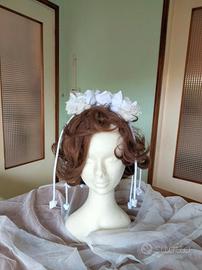 Vendo abito da sposa con strascico e fascia nuziale floreale per capelli Taglia 42