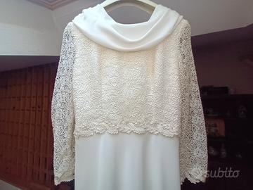 Abito da sposa tg 40/42 color avorio, corpetto in pizzo macramè