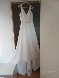 Abito da sposa in chiffon e organza realizzato da atelier sartoriale di Imola, completo di velo, taglia 42