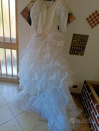 Abito bianco da sposa Vintage. Anni 1980/90. Corpetto in pizzo e perline, con un ampia gonna a balze e strascico. Vendo a euro 150.00