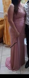 Abito da sposa ottimo completo di coprispalle pieno di strass originali, gonnellone con coda lunga con tutti strassi , corpetto particolare con strassi , in piu due abiti da cerimonia lavati da lavanderia, il rosa tutto ticamato e coda lunga , il dorato sul petto tutto particolare e con coda lunga lunga , ottimi tutti vestiti, per maggiori informazioni lasciate whatsapp in privato e vi soiego tutto , massima serietà