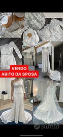 abito da sposa bianco in pizzo monospalla, di Aire Barcelona. Misura seno 35 cm, lunghezza manica 54 cm, lunghezza abito davanti 1,23 cm, lunghezza abito dietro 2.10 m, lunghezza solo strascico 1.1 m, larghezza vita 31 cm. coppe reggiseno imbottite. perfette condizioni.