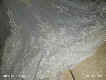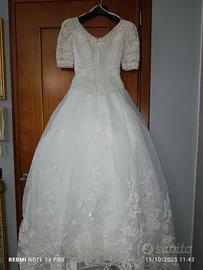 Vendo Abito da sposa principesco, indossato solo una volta, l'abito è stato acquistato da un atelier ed è ricamato a mano, con perline, mantenuto come nuovo nella propria custodia, il corpino si può rimuovere o lasciarlo così, consiglio solamente di lavarlo
