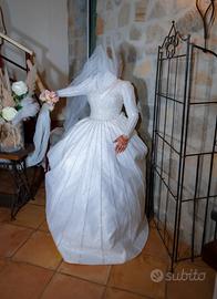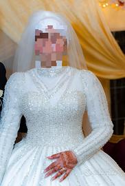 Vendo splendido abito da sposa realizzato su misura da un sarto professionista, completamente ricamato a mano, dallo stile regale e unico nel suo genere. Ideale per chi sogna un matrimonio da favola! š Dettagli dellāabito: ⢠Design trasformabile con 3 possibilitĆ di utilizzo: 1. Originale: parte superiore in tessuto trasparente (tulle) dalle coppe in su, comprese braccia e spalle, per un effetto elegante e leggermente velato 2. Coperto: basta indossare sotto un body bianco a maniche lunghe (non incluso), per chi preferisce o necessita copertura totale di petto, spalle e braccia 3. Modificato dal sarto: lāabito ĆØ predisposto per essere facilmente tagliato nella parte superiore, rimuovendo il tulle trasparente e lasciando solo la parte che arriva fino alle coppe, con spalle e schiena completamente scoperte. Ć un intervento sartoriale molto semplice e veloce ⢠Taglia: indossabile per chi porta una S/M o anche L (da provare) ⢠Ampio e gonfio dalla vita in giù, con effetto āprincipessa Disneyā ⢠Tessuto luminoso: brilla magnificamente con la luce, creando un effetto scenico straordinario ⢠Il vestito ha un elegante strascico ⢠Incluso velo lungo in tulle con strascico, da posizionare sopra lāhijab o sopra lāacconciatura š§µ Unico e artigianale: realizzato su misura, non ĆØ un abito da negozio industriale, ma un pezzo unico cucito con cura e attenzione ai dettagli. ā ļø Oggi abiti cosƬ non si trovano più nei negozi da sposa: ormai si vedono solo modelli semplici, stretti, simili ad abiti da sera. Questo, invece, ĆØ un vero vestito da regina, fatto per chi vuole stupire. š Prezzo: ā¬1100 ā trattabile in privato š Reggio Emilia šø Contattami per altre foto o per provarlo di persona. Disponibile anche per spedizione (a carico dellāacquirente).