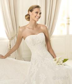 Splendido Abito della preziosa collezione Glamour di Pronovias, dallo stile romantico e ricercato, descritto come segue: Silhouette e Stile: Si tratta di un abito in stile principessa, caratterizzato da un corpetto aderente che si apre in una gonna ampia e voluminosa. Tessuto e Dettagli: L'abito è realizzato con sovrapposizioni di tulle e presenta preziosi ricami che arricchiscono l'intero modello. Corpetto: Presenta un corpetto con ricami in pizzo che valorizza il busto. Gonna: Ampia, composta da molteplici strati di tulle, morbidi e leggeri. Strascico: Il modello è dotato di uno strascico sul retro. Lavato in pulitura e perfettamente conservato. Da provare se realmente interessate (tg 42/44). In vendita a parte anche velo lungo abbinato e scarpe n.36 (valuto ulteriori sconti con più articoli).