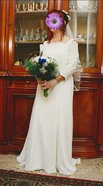 Come da titolo vendo abito da sposa taglia 44 in perfette condizioni, usato solo il giorno del matrimonio a fine ottobre, comprensivo di velo con pettine e sciarpa coprispalle dello stesso tessuto dell'abito. Lavato in lavanderia.
